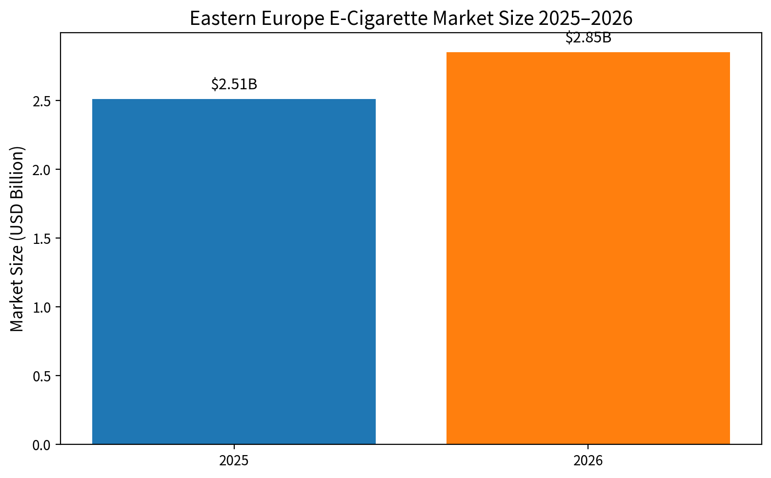 The Eastern European e-cigarette (vape) market continues to show strong momentum heading into 2026. Our latest projections put the total regional market size at approximately $2.5 billion in 2025, rising to $2.85 billion in 2026 (with a realistic range of $2.2–3.5 billion when including grey-market flows).
