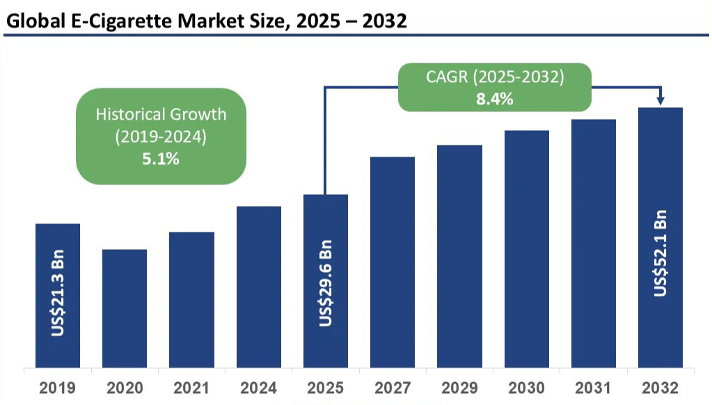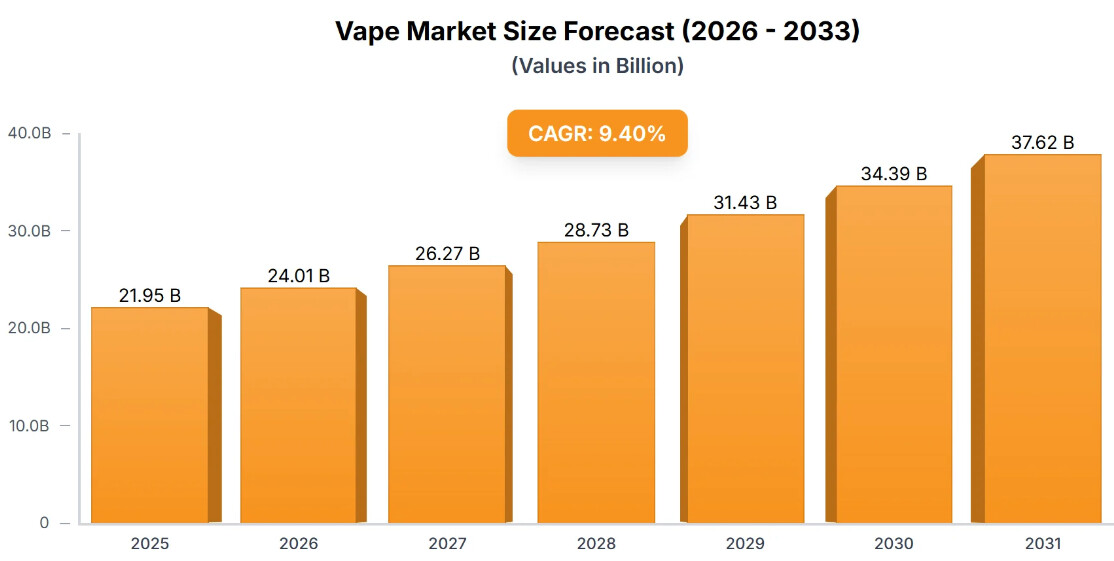 - Disposable vapes remain the engine of the market (50–60% share), but regulatory headwinds are building.